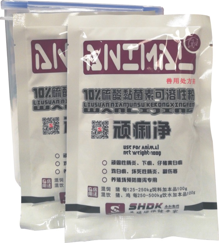 【适应症】用于防治猪、鸡革兰氏阴性菌所致的肠道感染,如仔猪黄痢、仔猪白