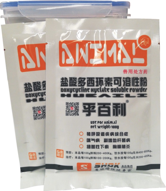 【用法与用量】以多西环素计。混饮:每1L水,猪25-50mg,鸡300mg。