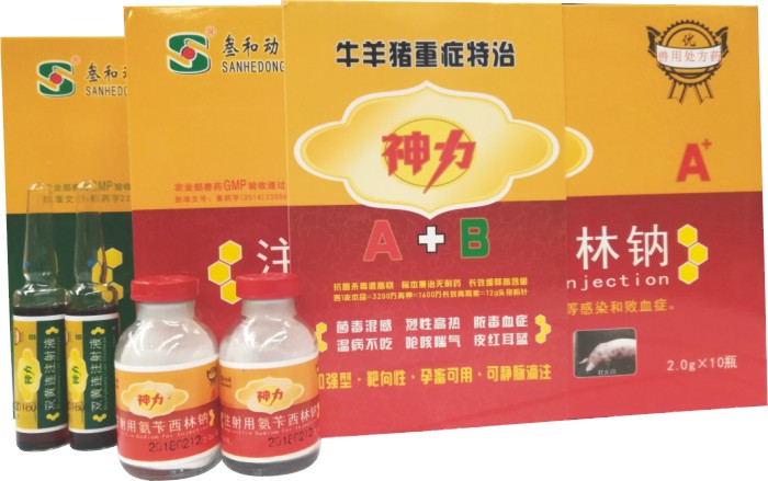 羊、猪:80-150Kg体重用本品A、B各1支直接稀释溶解 肌内或静脉注射 一日2次 连用3日。