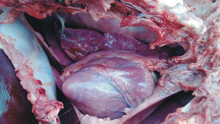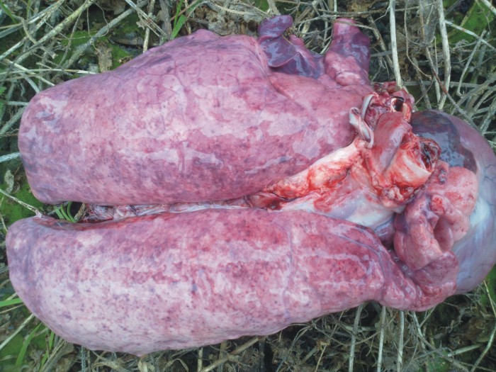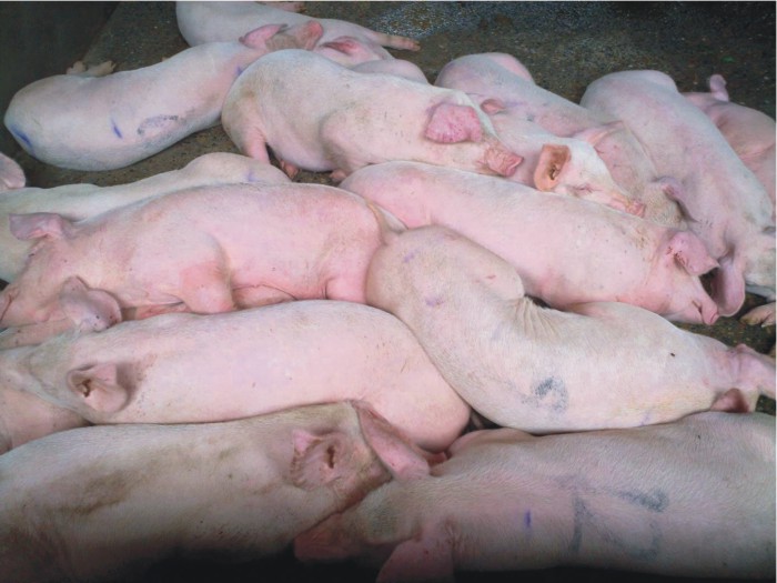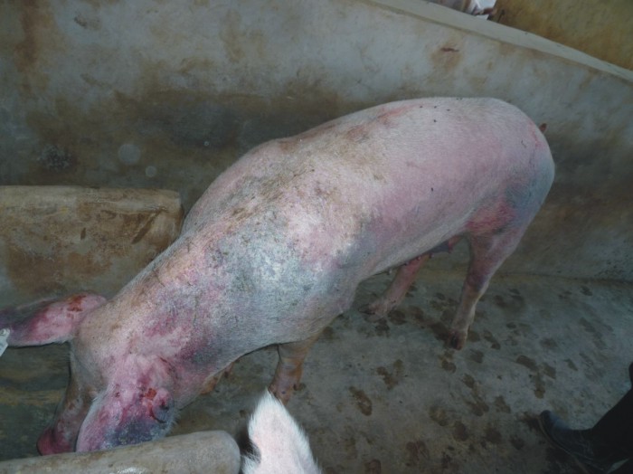 6、急性病例病程1-2天,且多为体重70kg以上猪只发病快、急。